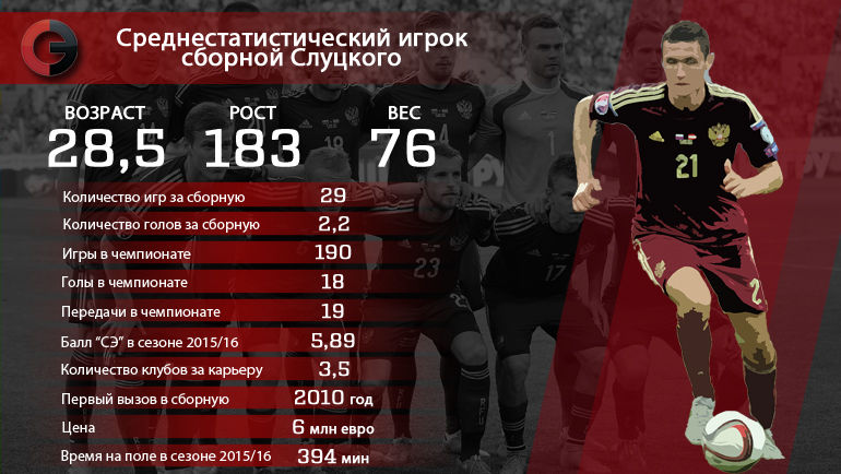 В центре поля с высочайшей вероятностью выйдет Денисов. После ЧМ-2014, где он неожиданно уступил место в старте Глушакову, Игорь находился со сборной в странных отношениях. Он вроде бы открыто не заявлял о нежелании сотрудничать с Капелло, да и итальянец периодически включал его в списки. Но как нарочно, непосредственно перед каждым сбором национальной команды Денисов травмировался или заболевал. Не сомневаюсь, Слуцкий знает, как найти общий язык с Денисовым, которому присуще своеобразное чувство справедливости и порой излишняя прямота, и сделает на него ставку. Полузащитников-разрушителей такого уровня среди россиян по-прежнему нет.