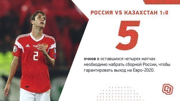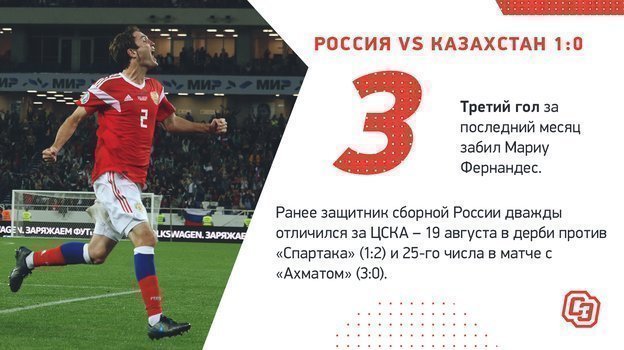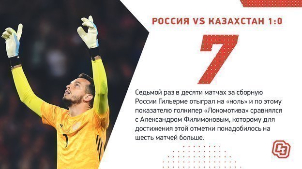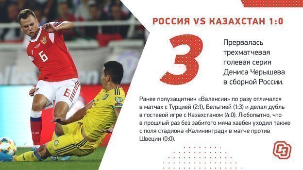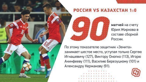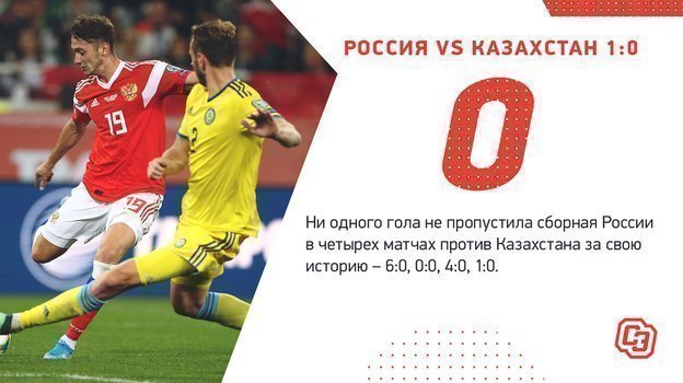 Главные цифры победы сборной России над Казахстаном (1:0).