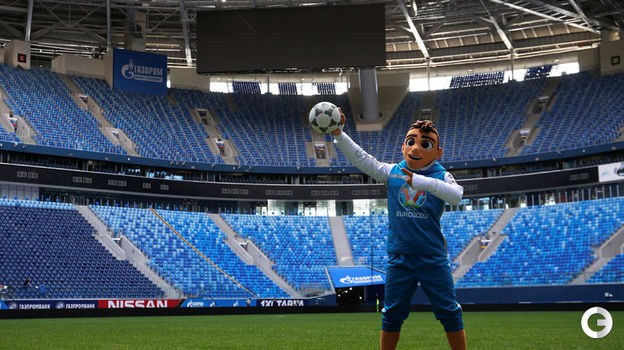 На стадионе "Зенита" побывал официальный талисман чемпионата Европы 2020 года Скиллзи. "Газпром Арена" включена в список сооружений, на которых будут проводиться матчи ЧЕ-2020. Первым из игроков сборной России с талисманом познакомился Александр Ерохин.