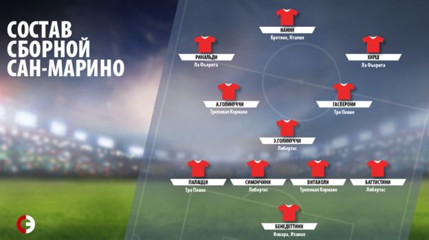 Команда из крошечного государства – настоящий футбольный карлик и абсолютный аутсайдер везде и во всем. Сан-Марино занимает последнее место в рейтинге ФИФА, и за всю свою историю эта сборная одержала одну единственную победу. Четырнадцать с половиной лет назад над Лихтенштейном (1:0). Автор исторического гола Анди Сельва попрощался с национальной командой, хотя по-прежнему играет на клубном уровне, параллельно тренируя юношескую сборную 17-летних. В его карьере было несколько итальянских клубов, а сейчас игроков такого уровня в Сан-Марино нет. Может, выстрелит 18-летний Нанни из "Кротоне"?