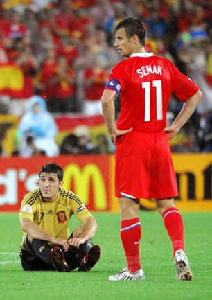 По мнению Семака, не сработали главные козыри команды Гуса Хиддинка. "Мы делали, что могли, но выглядели не лучшим образом, - заметил полузащитник. - Наши преимущества в предыдущих матчах - это физическая подготовка и быстрый переход от обороны к атаке. Сегодня ничего этого не было. Это большая удача, что мы вышли в полуфинал. Сегодня могли сыграть лучше, но так сложился матч. Абсолютно заслуженно испанцы выиграли". |