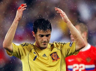 На турнире в Австрии и Швейцарии Вилья забил четыре гола, причем три из них - в первом матче группового этапа против России. В полуфинале с россиянами нападающий попросил замену еще в первом тайме. Повреждение Вилья получил при исполнении штрафного удара. За десять минут до перерыва вместо форварда вышел Сеск Фабрегас, при участии которого во второй половине испанцы забили все три мяча и одержали крупную победу. |