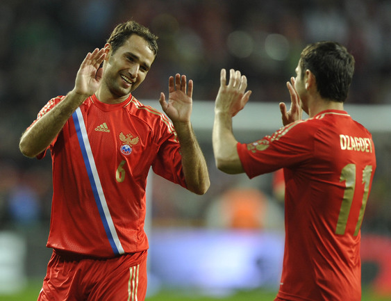 Россия: Габулов, Анюков, В. Березуцкий, Игнашевич, Жирков (Глушаков, 63), Широков (Билялетдинов, 71), Денисов, Зырянов (Комбаров, 46), Дзагоев (Кокорин, 46), Кержаков (Погребняк, 46), Аршавин.