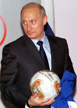 Владимир Путин рассчитывает, что российская сборная по футболу на чемпионате Европы-2004 в Португалии не будет статистом и достойно представит Россию. Об этом президент России сказал на встрече с главным тренером сборной России по футболу Георгием Ярцевым, который подарил от имени футболистов главе государства золотую бутсу. |