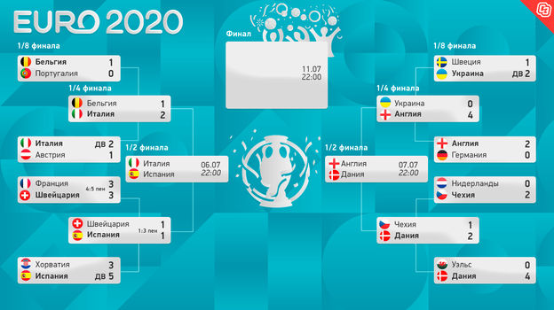 Евро-2020: расписание, даты и время начала матчей 1/2 финала