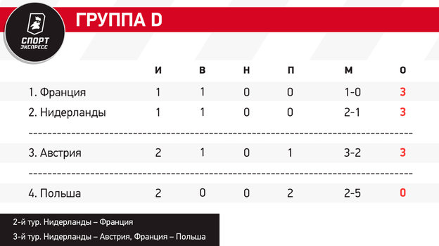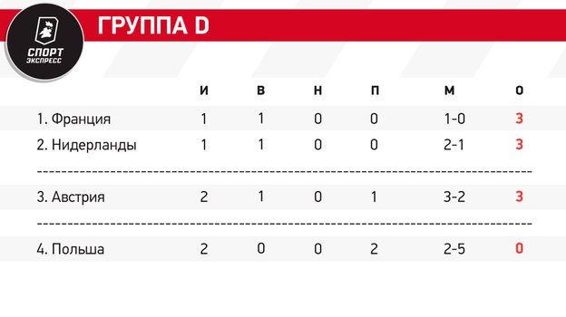 Польша проиграла Австрии (1:3) во втором туре группы D на Евро-2024. Уже сегодня поляки могут стать первой командой, которая лишится шансов попасть в плей-офф. Это произойдет, если Франция обыграет Нидерланды или сборные сыграют вничью.