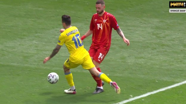 На 43-й минуте матча 2-го тура чемпионата Европы-2020 Украина — Северная Македония аргентинский арбитр Фернандо Андрес Рапаллини принял верное решение, наказав Николая Шарапенко желтой карточкой. Судья правильно квалифицировал случившееся в штрафной площади, где игрок украинской команды упал, пытаясь заработать 11-метровый удар. Защитник Дарко Велкоски его не коснулся — хавбек симулировал фол.