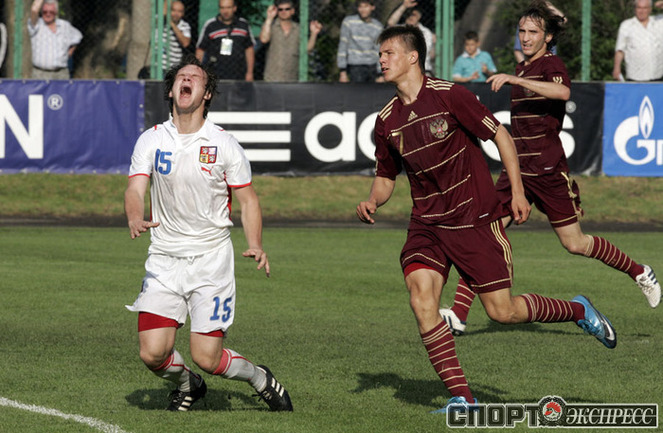 Футбол. Чемпионат Европы U-19. Элитный раунд. Группа 5. 2-й тур. Москва. 23.05.2010. Чехия - Россия - 3:3 (2:2). Голы: Гатагов, 11 (0:1). Крейчи, 28 (1:1). Скалак, 32 (2:1). Кокорин, 45 (2:2). Кадлец, 78 (3:2). Коутны, 82 - в свои ворота (3:3). Сборная России не смогла выйти в финальный раунд чемпионата Европы. Из группы досрочно выходит только одна команда - Италия, которая победила во втором матче сверстников из Северной Ирландии - 3:2. Фото - Федор УСПЕНСКИЙ, "СЭ"
