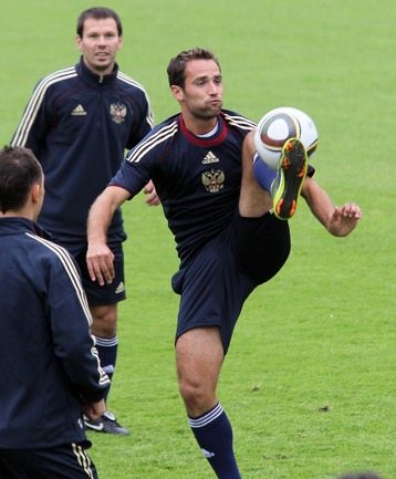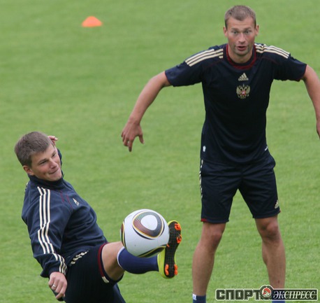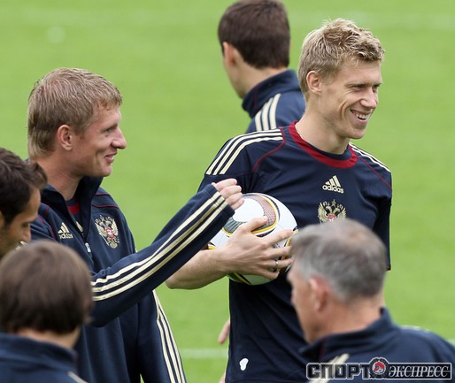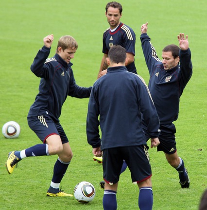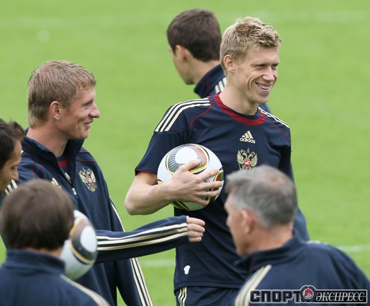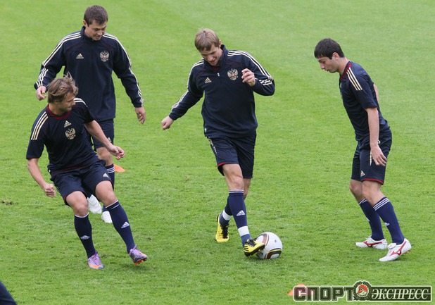Сборная России по футболу провела первую тренировку перед стартом в отборочном турнире ЕВРО-2012. В составе национальной команды отсутствовал полузащитник "Зенита" Владимир Быстров, у которого травма голеностопа. Фото - Александр ФЕДОРОВ, "СЭ"