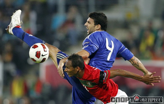 Накануне прошли матчи отборочного турнира первого тура Чемпионата Европы-2012. Португалия - Кипр - 4:4. Гол: Алонефтис, 3 (0:1); Алмейда, 8 (1:1); Константину, 11 (1:2); Мейрелеш, 29 (2:2); Данни, 50 (3:2); Оккас, 57 (3:3); Фернандеш, 60 (4:3); Авраам, 89 (4:4). Фото REUTERS