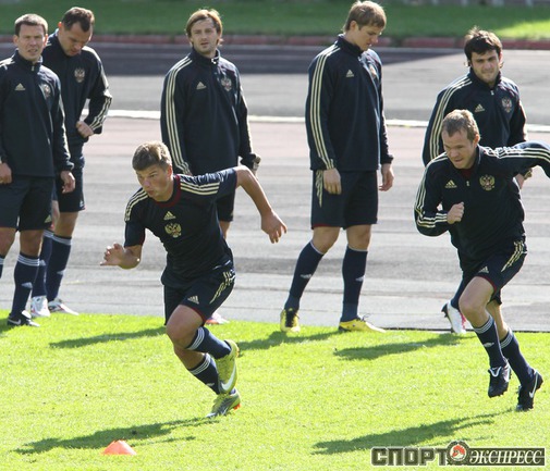 Накануне встречи со сборной Словакии в отборочном турнире ЕВРО-2012 сборная России провела очередную тренировку на стадионе имени Эдуарда Стрельцова в Москве. Фото - Александр ФЕДОРОВ, "СЭ"