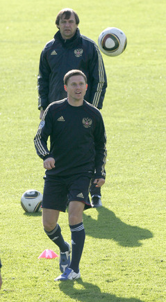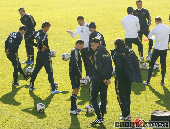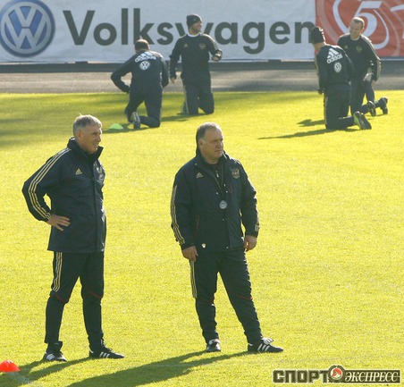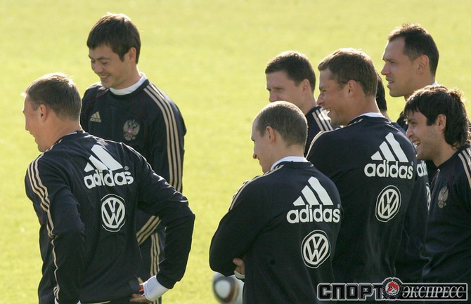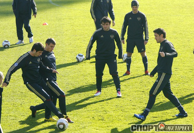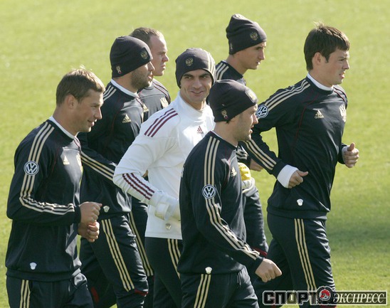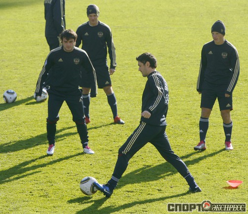 Сборная России по футболу провела тренировку в Москве перед вылетом в Ирландию на отборочный матч ЧЕ-2012. В составе команды тренировались вызванные накануне Алан Касаев и Александр Бухаров. Фото - Татьяна ДОРОГУТИНА, "СЭ"