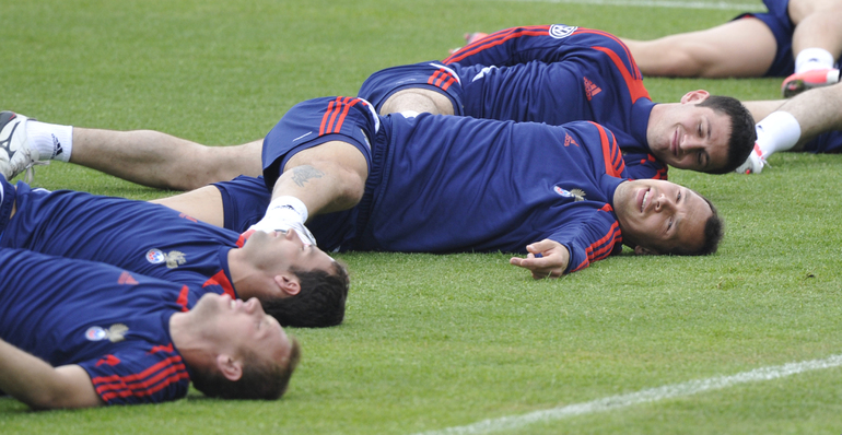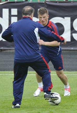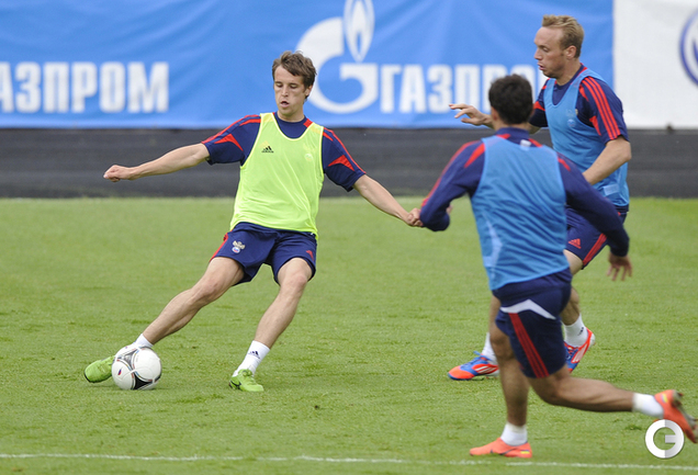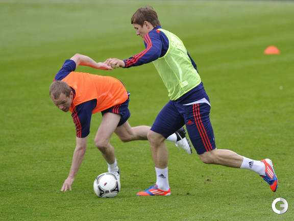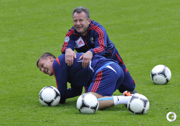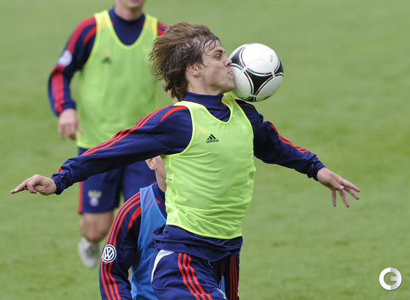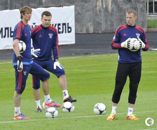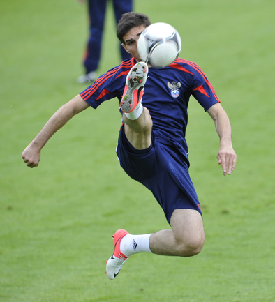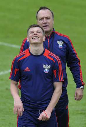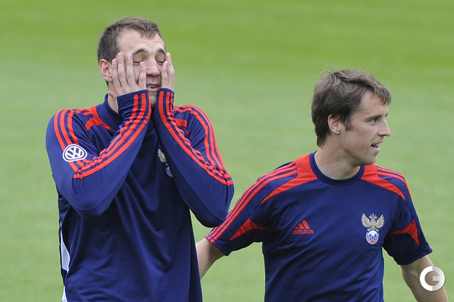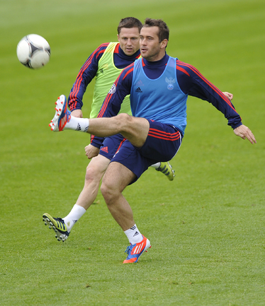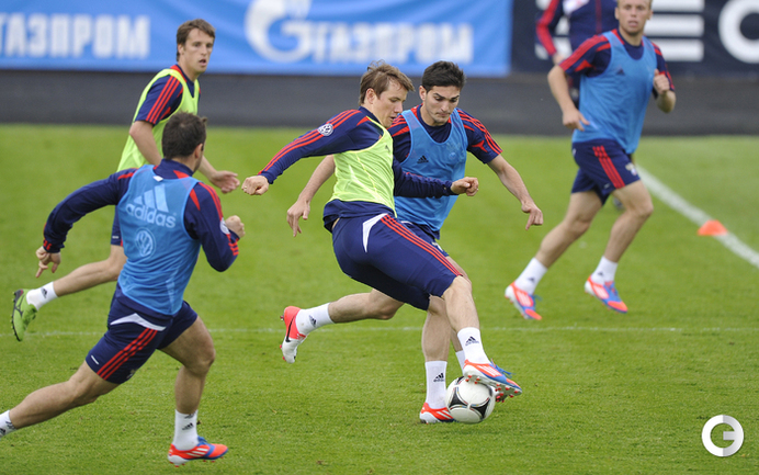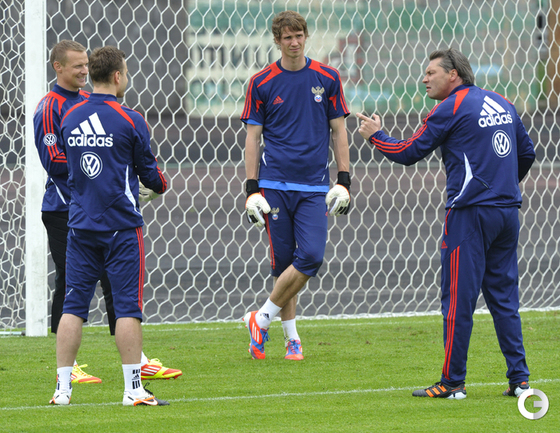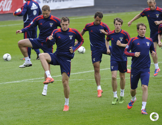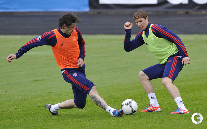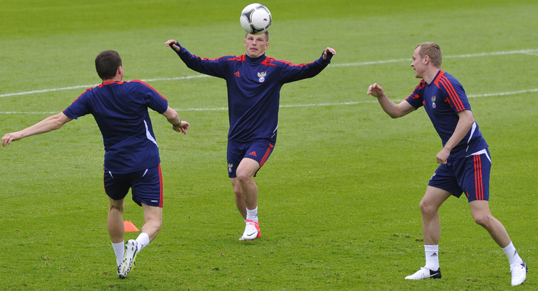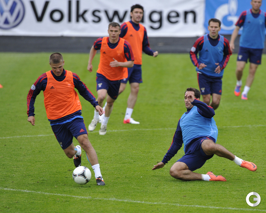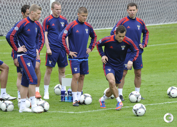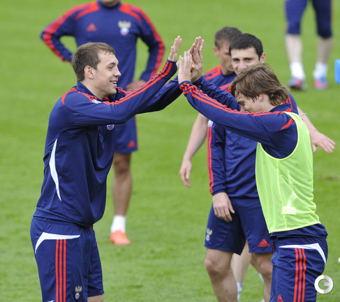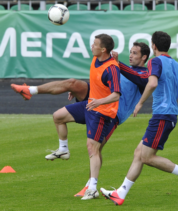 Футболисты сборной России продолжают подготовку к ЕВРО-2012. На стадионе имени Эдуарда Стрельцова команда Дика Адвоката провела тренировку, которая полностью была открыта для журналистов. Фото - Александр ФЕДОРОВ," СЭ"