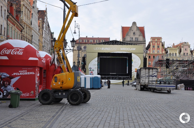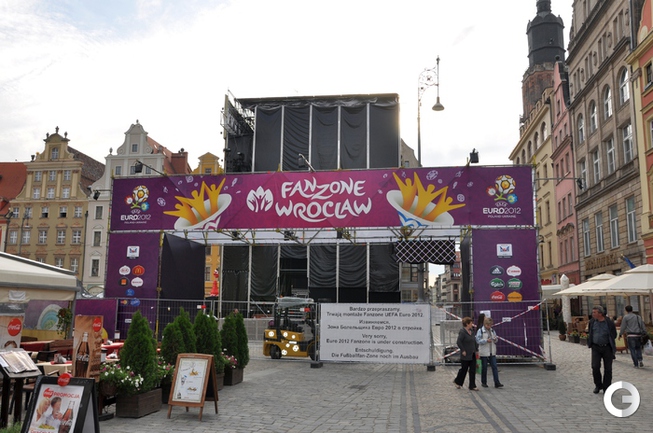 За пару дней фан-зона разительно изменилась и вот-вот будет готова к открытию. Пока же трудно себе представить, что здесь скоро соберутся тысячи российских, чешских и польских болельщиков. Старая часть Вроцлава очень красива - архитектурой, людьми, гномами, трамваями, соборами, скульптурами... Хотелось бы, чтобы все это сохранилось нетронутым после посещения Вроцлава нашими болельщиками.Фото и тескт Александра БОБРОВА, "СЭ"