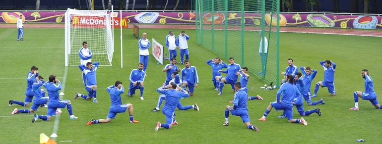 Специальный фотокорреспондент "СЭ" Александр ФЕДОРОВ посетил тренировку сборной Греции накануне матча со сборной России.