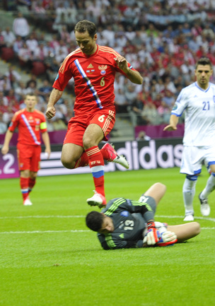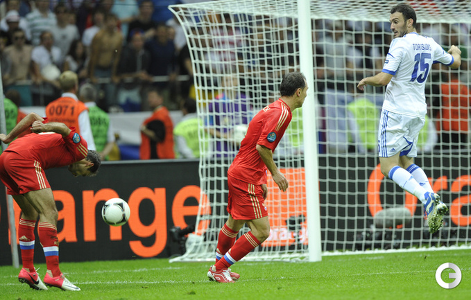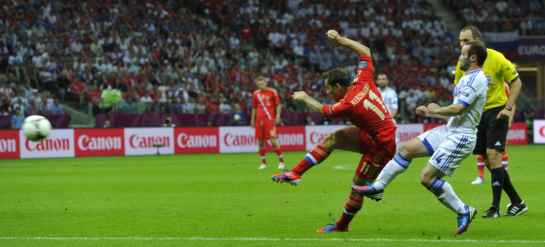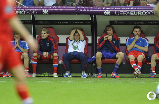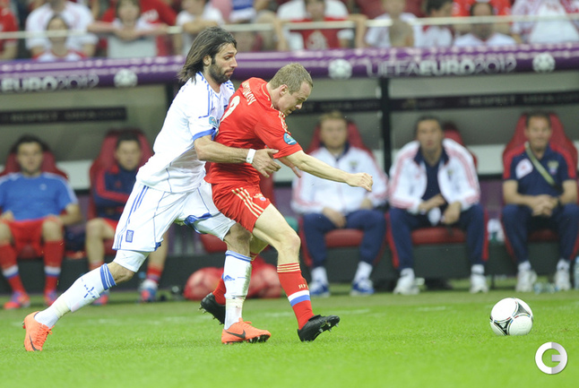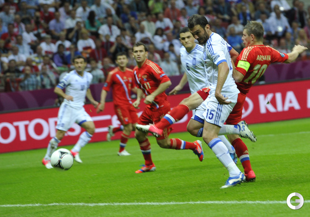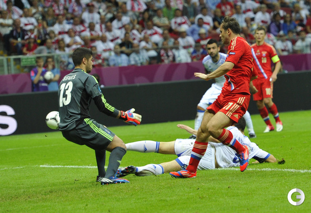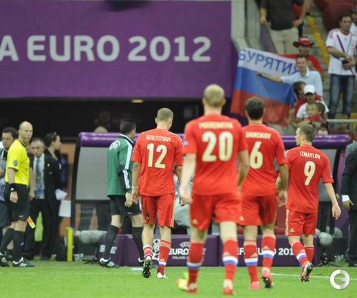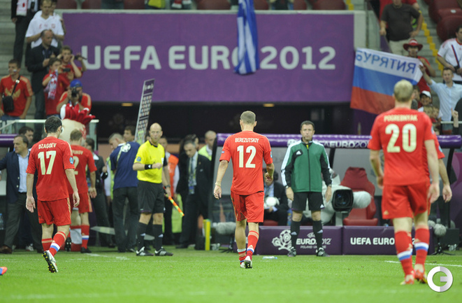 16 июня. Варшава. Греция - Россия - 1:0. Гол: Карагунис, 45+2. Греция: Сифакис, Папастатопулос, Торосидис, Пападопулос, Маниатис, Тзавеллас, Кацуранис, Карагунис (Макос, 67), Гекас (Холевас, 64), Салпигидис (Нинис, 83), Самарас. Россия: Малафеев, Березуцкий, Игнашевич, Анюков (Измайлов, 81), Жирков, Денисов, Широков, Глушаков (Погребняк, 72), Дзагоев, Аршавин, Кержаков (Павлюченко, 46). Предупреждения: Карагунис, 61. Анюков, 61. Жирков, 69. Дзагоев, 70. Погребняк, 90+3. Холевас, 90+4. Судьи: Эрикссон. Виттберг, Класениус (все - Швеция). Фото Александра ФЕДОРОВА, "СЭ"