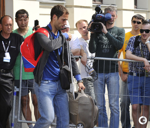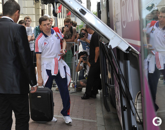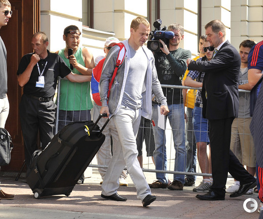 Специальный фотокорреспондент "СЭ" на EURO-2012 Александр ФЕДОРОВ наблюдал, как сборная России покидала гостиницу в Варшаве, отправляясь домой с чемпионата Европы.