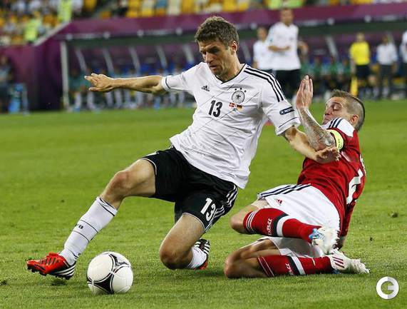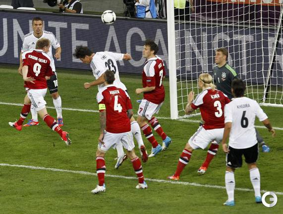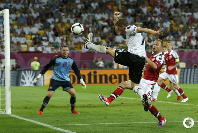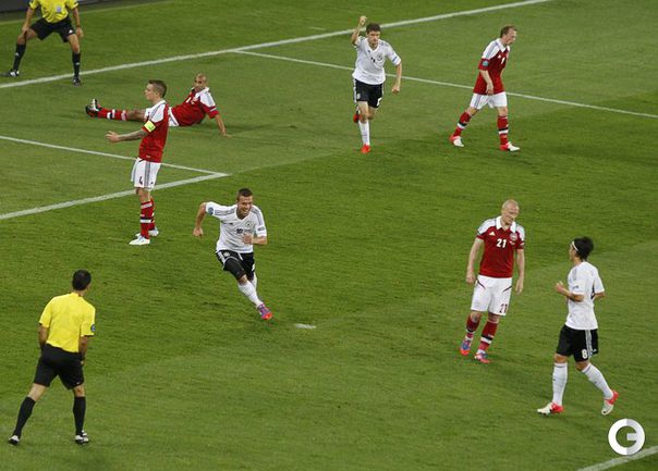 EURO-2012. Львов (Украина). Групповой турнир. Группа B. 3-й тур Дания – Германия - 1:2 (1:1) . Голы: Подольски, 19 (0:1). Крун-Дели, 24 (1:1). Л.Бендер, 80 (1:2). Фото REUTERS