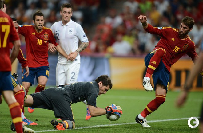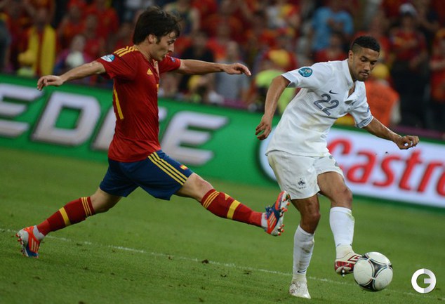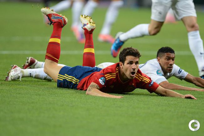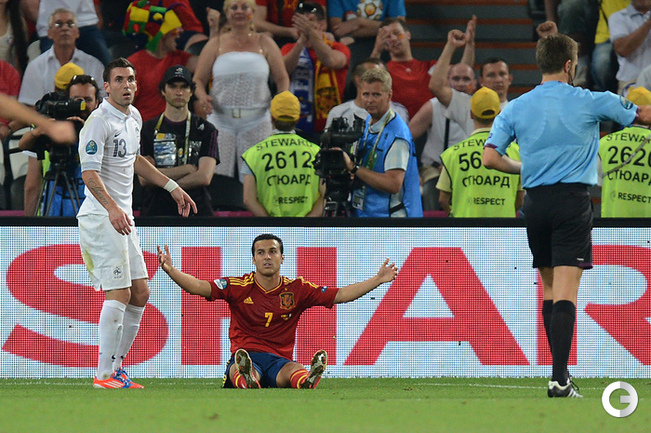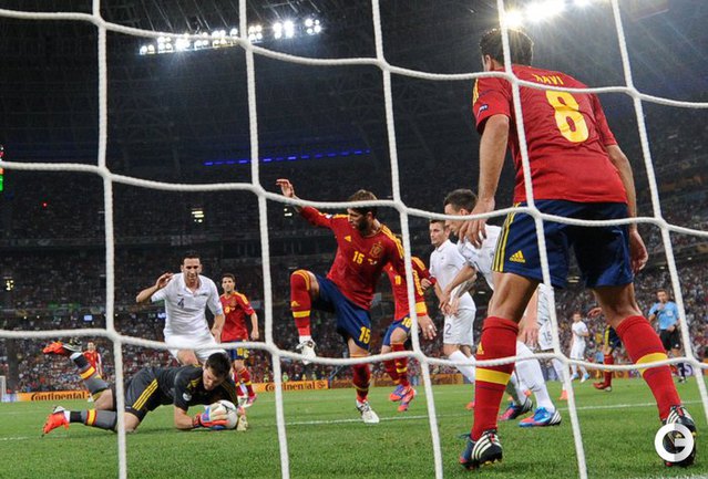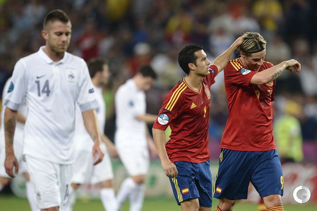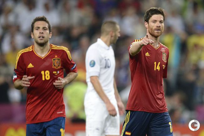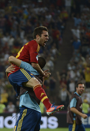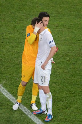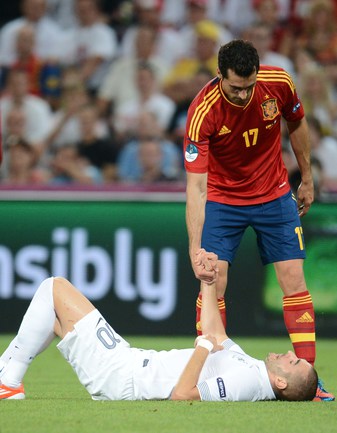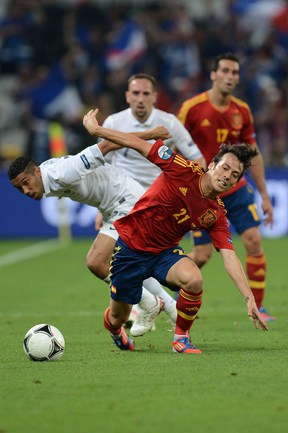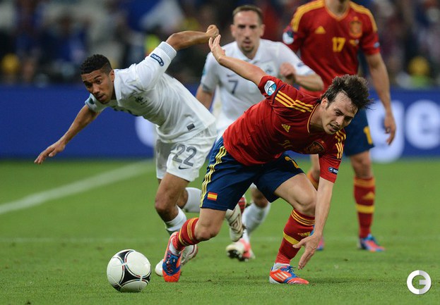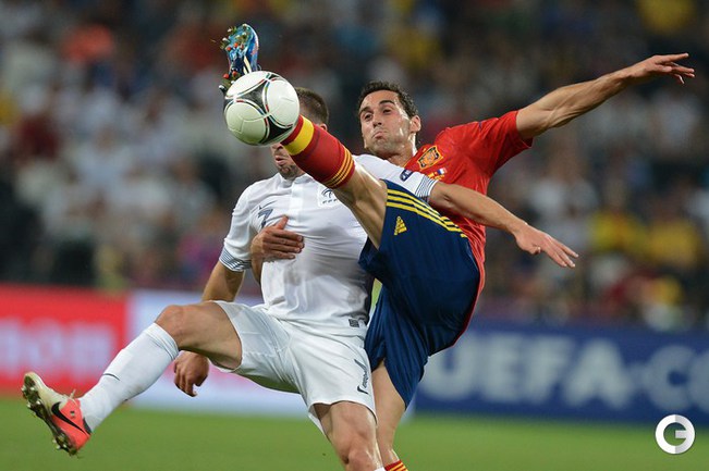 Футбол. Донецк. Euro-2012. 1/4 финала. Испания - Франция - 2:0 (1:0). Голы: Хаби Алонсо, 19 (1:0). Хаби Алонсо, 90+1 - с пенальти (2:0). Фото AFP
