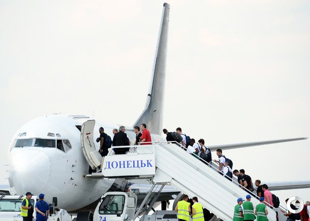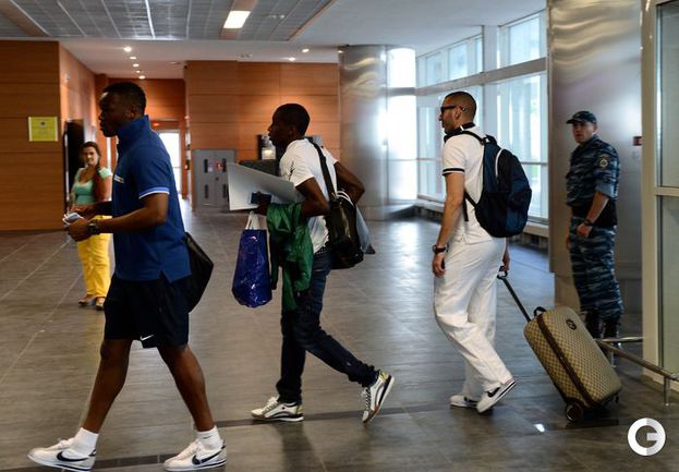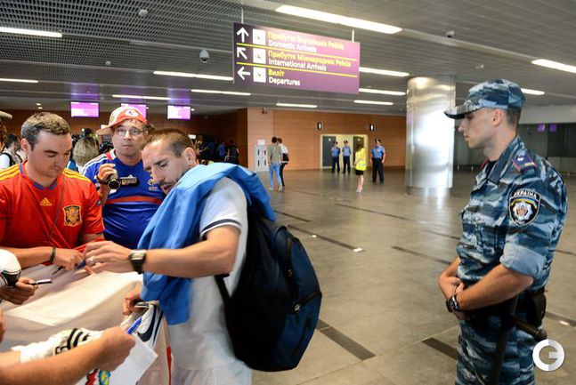 EURO-2012. После поражения от испанцев в четвертьфинале футболисты сборной Франции возвращаются домой. Репортаж из аэропорта в Донецке. Фото AFP