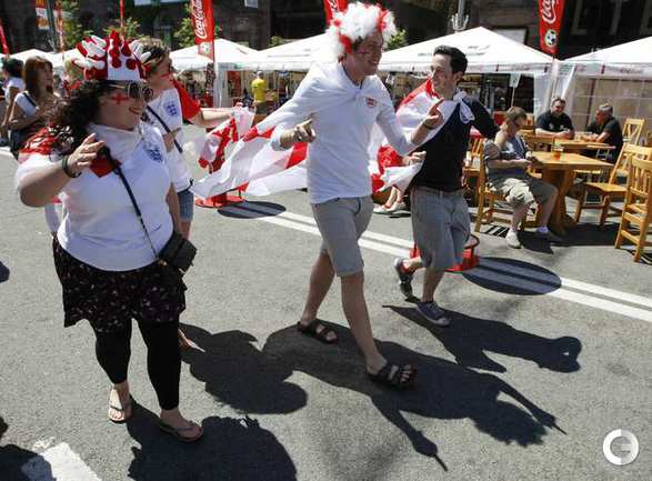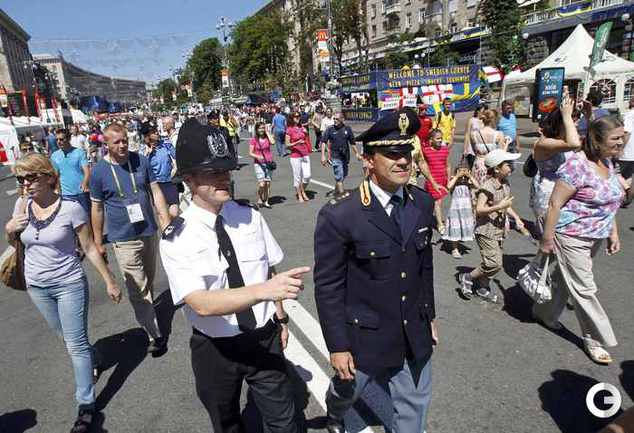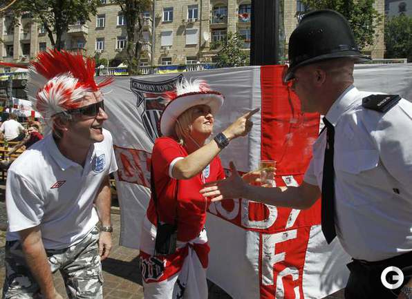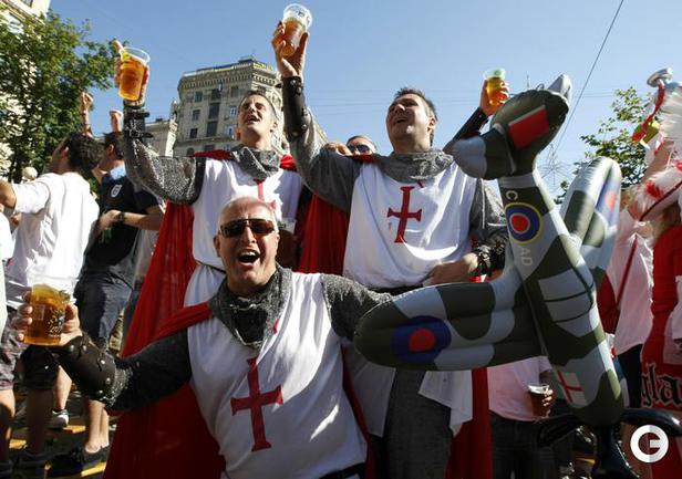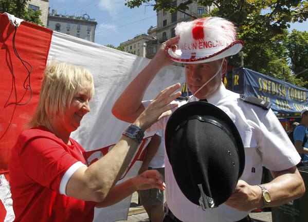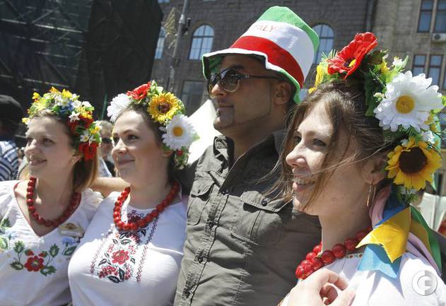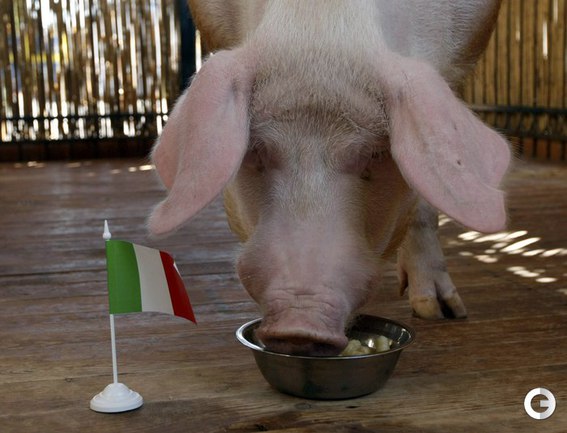 EURO-2012. Киев перед матчем 1/4 финала между сборными Италии и Англии. Украинский свин Фунтик предсказал победу команды Чезаре Пранделли, выбрав миску с едой рядом с итальянским флагом. Фото REUTERS