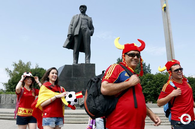 EURO-2012. Донецк перед полуфиналом Португалия - Испания. Киевский свин Фунтик предсказывает победу команды Криштиану Роналду. Фото REUTERS