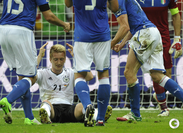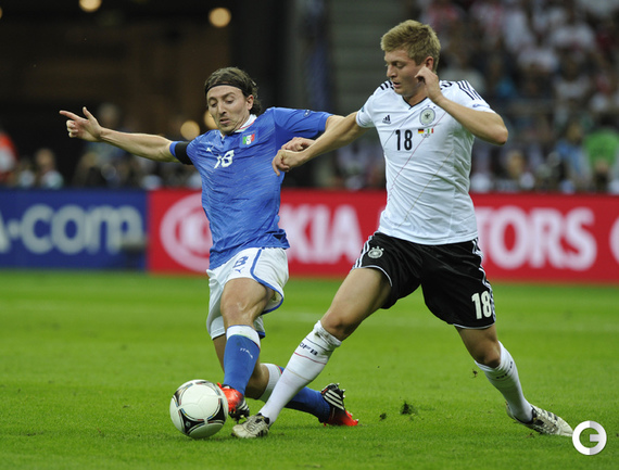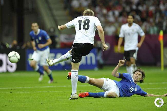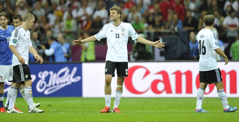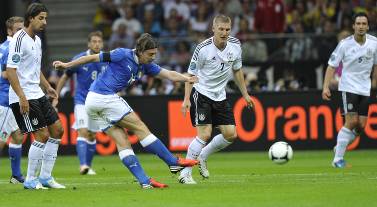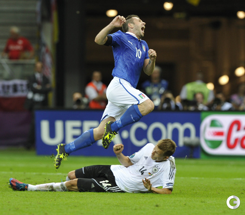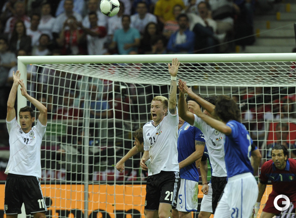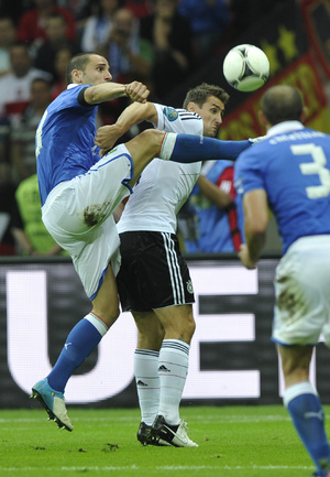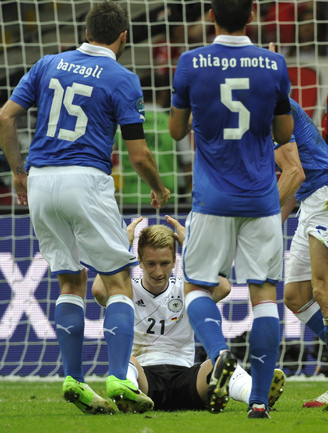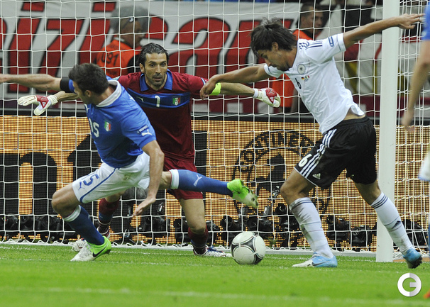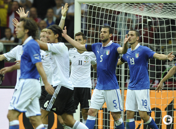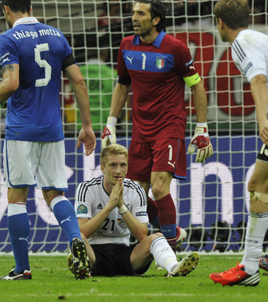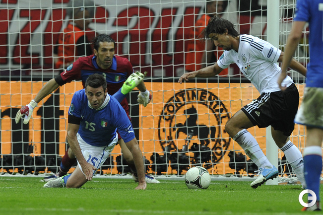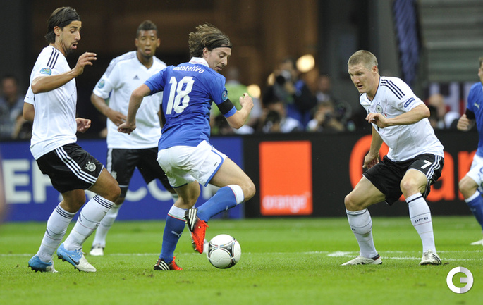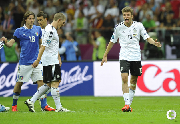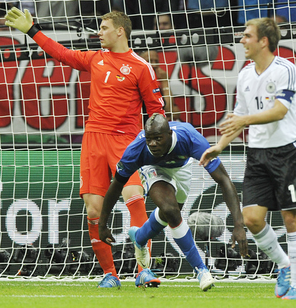 Футбол. Варшава. EURO-2012. 1/2 финала. Германия - Италия - 1:2 (0:2). Голы: Балотелли, 20 (0:1). Балотелли, 36 (0:2). Езил, 90+2 - с пенальти (1:2). Фото - Александра ФЕДОРОВА, "СЭ"