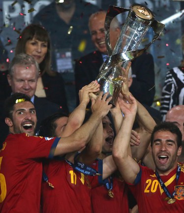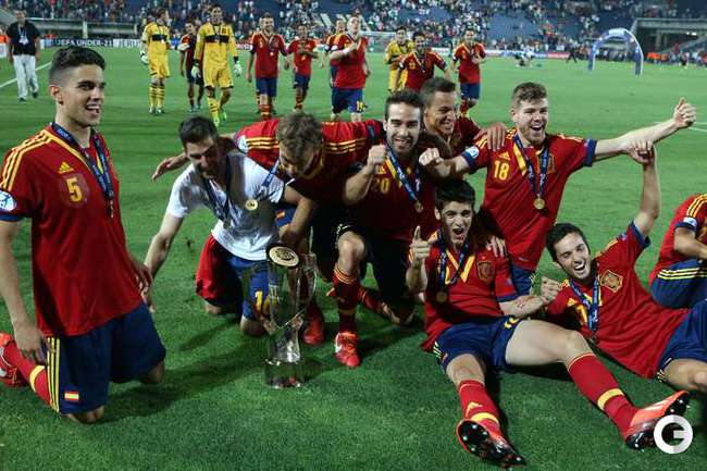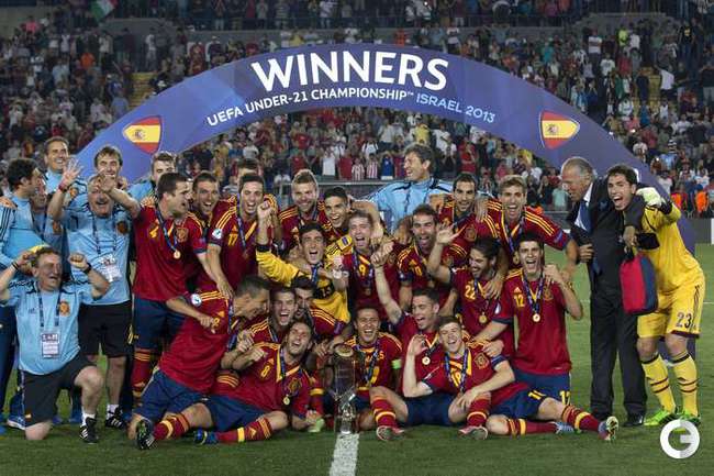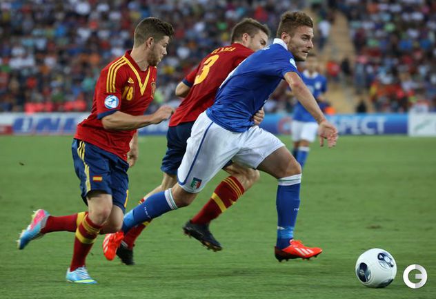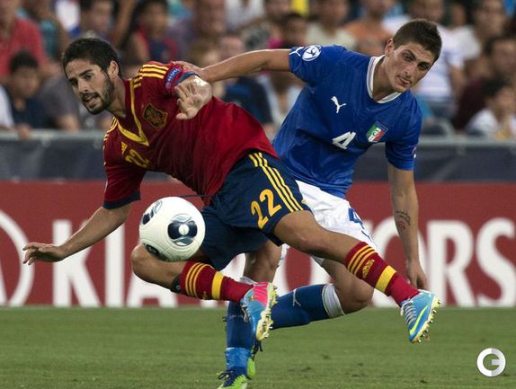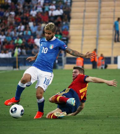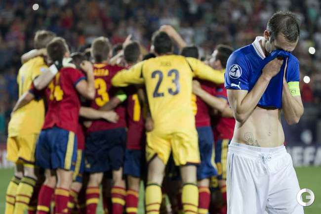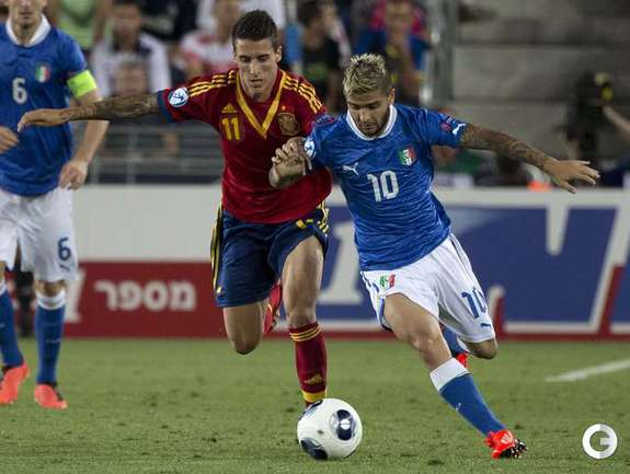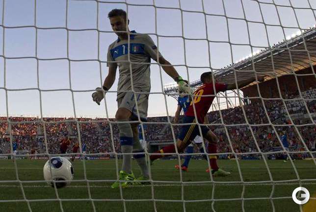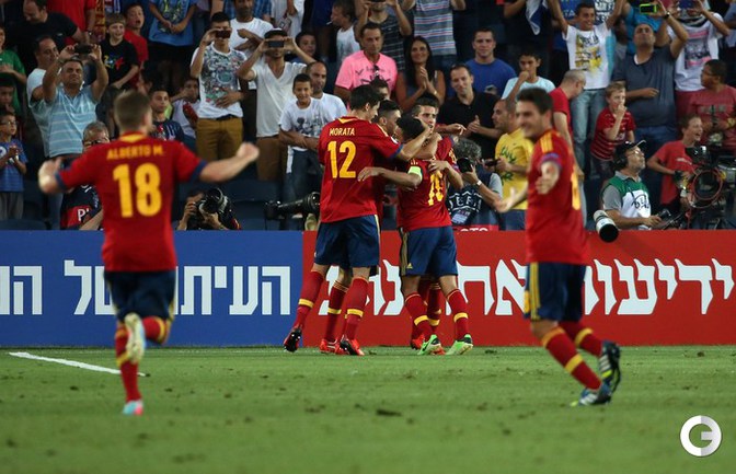 Футбол. Петах-Тиква. Чемпионат Европы-2013. Молодежные сборные (игроки не старше 21 года). Финал. Италия – Испания – 2:4 (1:3). Голы: Тиагу, 6 (0:1). Иммобиле (Бьянкетти), 10 (1:1). Тиагу, 31 (1:2). Тиагу, 38 - с пенальти (1:3). Иско, 65 - с пенальти (1:4). Борини, 80 (2:4). Фото AFP