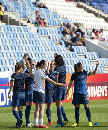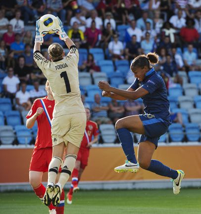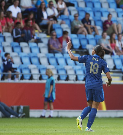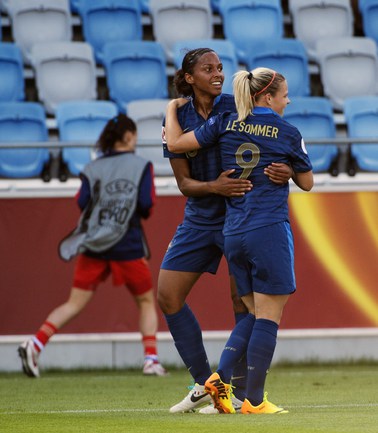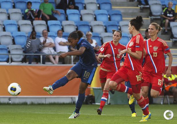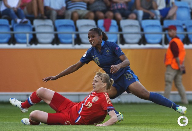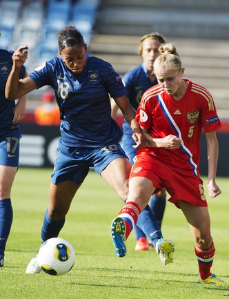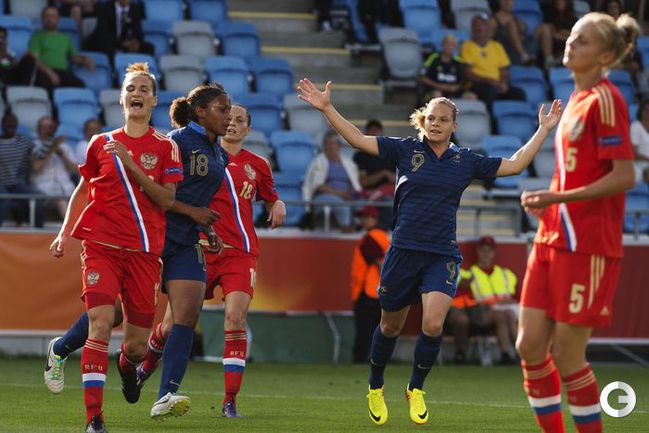 Футбол. Швеция. Чемпионат Европы. Женщины. Групповой этап. Группа С. 1-й тур. Франция – Россия – 3:1 (2:0). Голы: Дели, 21 (1:0). Дели, 32 (2:0). Ле Сомме, 67 (3:0). Морозова, 84 (3:1). Фото AFP