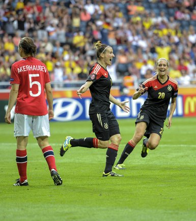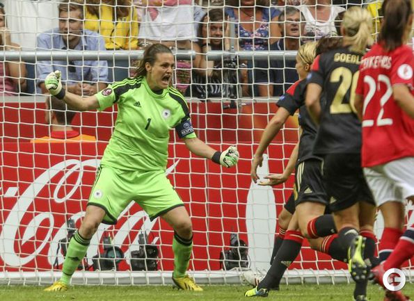 Футбол. Женщины. Евро-2013. Финал. Германия - Норвегия 1:0. Сборная Германии в восьмой раз выиграла чемпионат Европы среди женщин. В финале ЕВРО-2013 немки переиграли Норвегию благодаря голу вышедшей на замену Ани Миттаг. Героем решающей встречи стала вратарь Надин Ангерер, которая отразила сразу два 11-метровых. Фото REUTERS