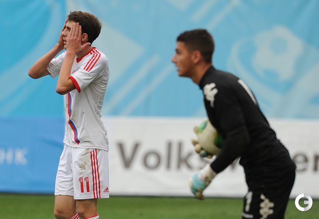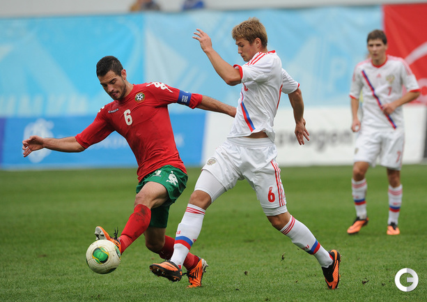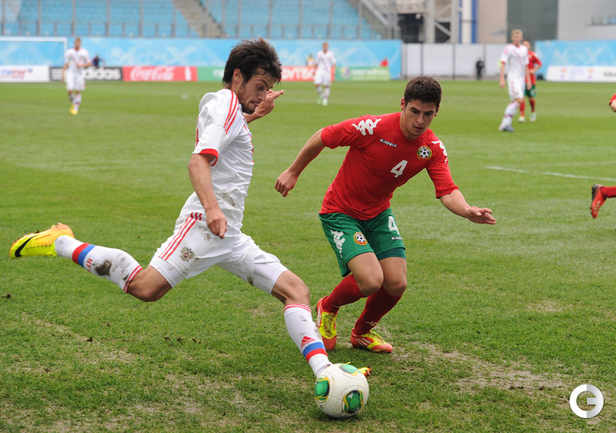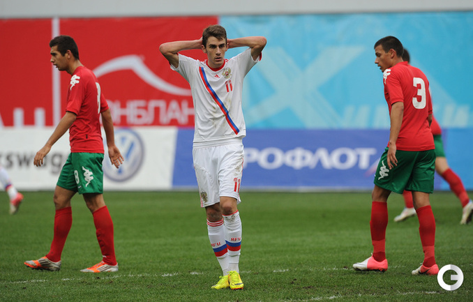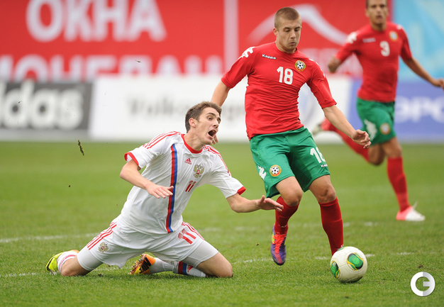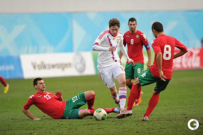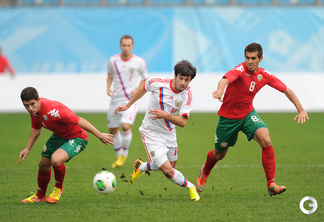 Футбол. Чемпионат Евроры-2015. Молодежные сборные. Отборочный турнир. Группа 5. РОССИЯ – Болгария – 3:1 (1:1). Голы: Обухов, 19 – с пенальти (1:0). Колев, 45+4 (1:1). Обухов, 48 (2:1). Базелюк, 63 (2:1). Удаление: Гранчов, 18 (фол "последней надежды"). Фото - Федор УСПЕНСКИЙ, "СЭ"