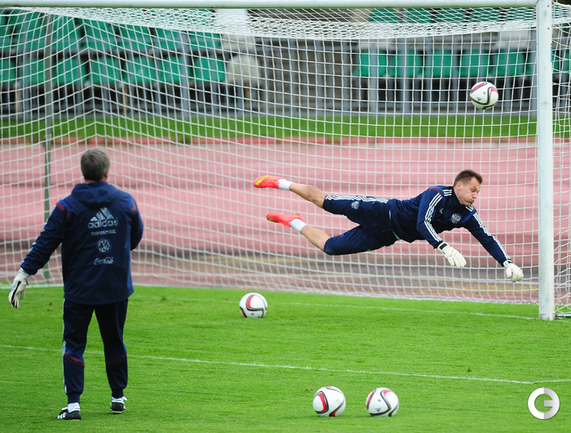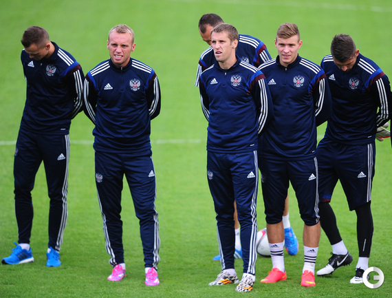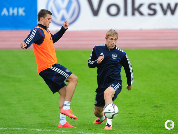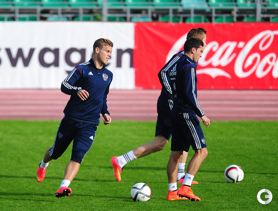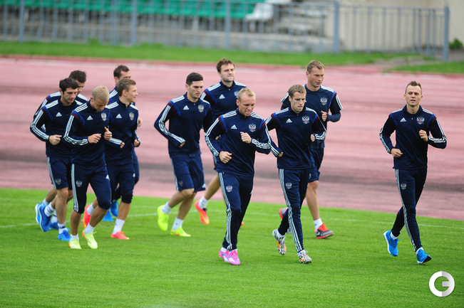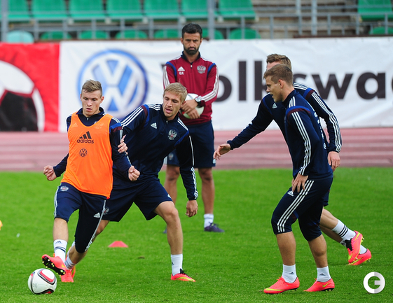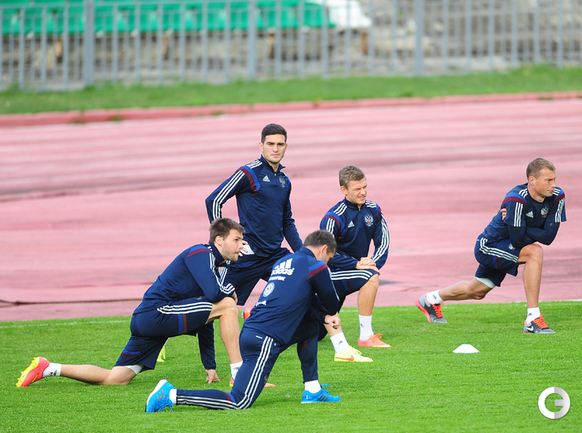 Сборная России провела тренировку в рамках подготовки к стартовому матчу отборочного турнира чемпионата Европы-2016 против Лихтенштейна. Фото - Антон Сергиенко, "СЭ"
