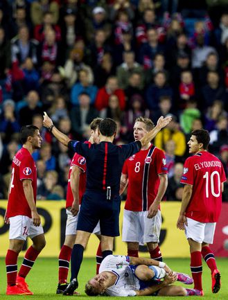 Футбол. Чемпионат Европы-2016. Отборочный турнир. Группа H. Норвегия – Италия – 0:2 (0:1). Голы: Цаца, 16 (0:1). Бонуччи, 62 (0:2). Группа A. Исландия – Турция – 3:0 (1:0). Голы: Бедварссон, 18 (1:0). Сигурдссон, 76 (2:0). Сигторссон, 77 (3:0). Группа H. Хорватия – Мальта – 2:0 (0:0). Голы: Модрич, 46 (1:0). Крамарич, 81 (2:0). Группа B. Андорра – Уэльс – 1:2 (1:1). Голы: Лима, 6 – с пенальти (1:0). Бэйл, 22 (1:1). Бэйл, 81 (1:2). Босния и Герцеговина – Кипр – 1:2 (1:1). Голы: Ибишевич, 6 (1:0). Христофи, 45 (1:1). Христофи, 73 (1:2). Фото AFP