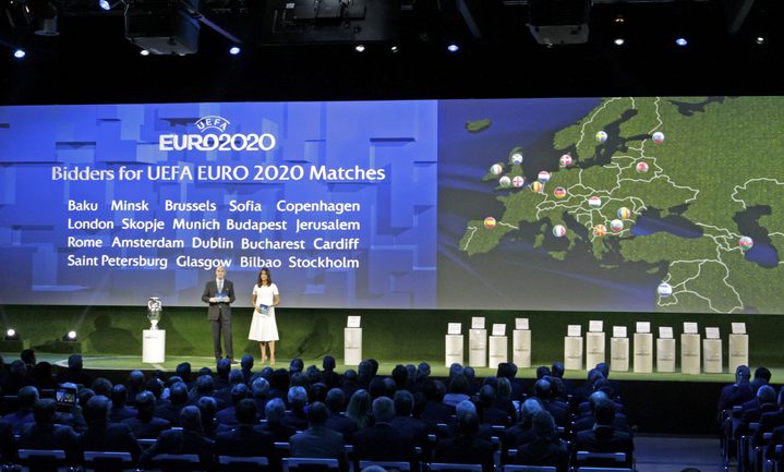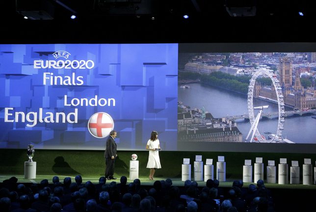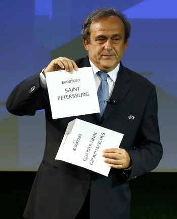 19.09.2014. Женева. Исполком УЕФА определил города, в которых пройдет Euro-2020. Кандидат от России – Санкт-Петербург примет три матча групповых турниров и один четвертьфинал. Фото - AFP, REUTERS