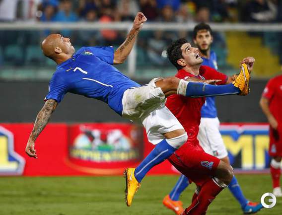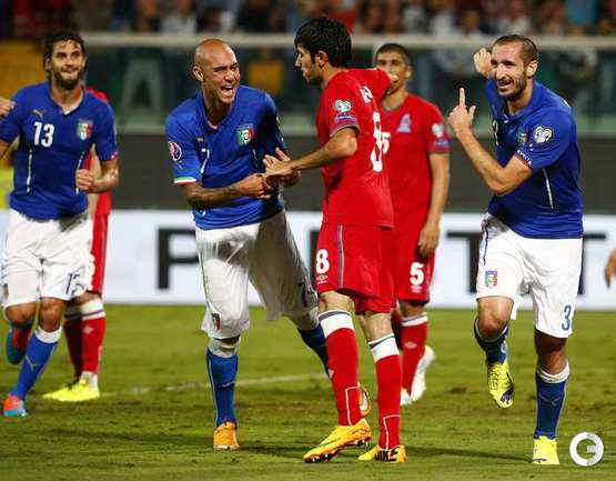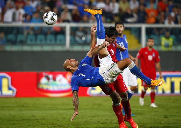 Сборная Италии в домашнем матче отборочного турнира Euro-2016 вырвала победу у Азербайджана (2:1). Все три гола в этом поединке забил защитник "Ювентуса" Джорджо Кьеллини. Фото AFP, REUTERS