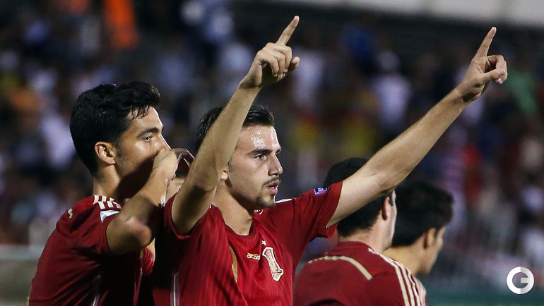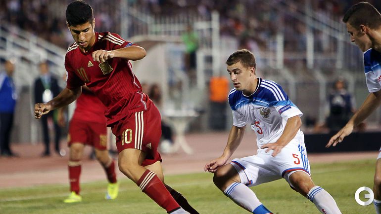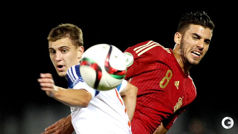 Сборная России в финале юношеского Euro-2015 (для игроков не старше 19 лет) уступила Испании (0:2). У испанцев отличились Борха Майораль и Матиас Науэль. Команда Дмитрия Хомухи после победы на чемпионате Европы-2013 (U-17) не смогла выиграть континентальное первенство в следующей возрастной группе. Фото AFP