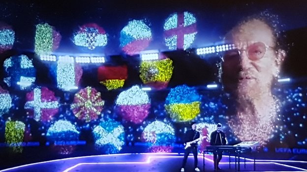 Вокалист популярной ирландской рок-группы U2 Боно вместе с нидерландский диджеем Мартином Гарриксом и гитаристом своего коллектива Эджем виртуально исполнил композицию We Are The People (Мы — люди, английский). Эта песня — гимн Евро.