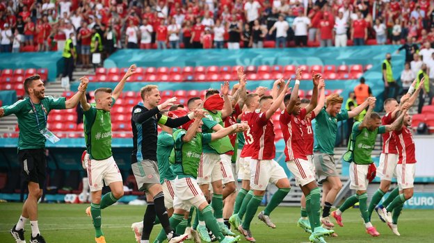 Кадры матча чемпионата Европы на заполненной «Пушкаш Арене» в Будапеште.