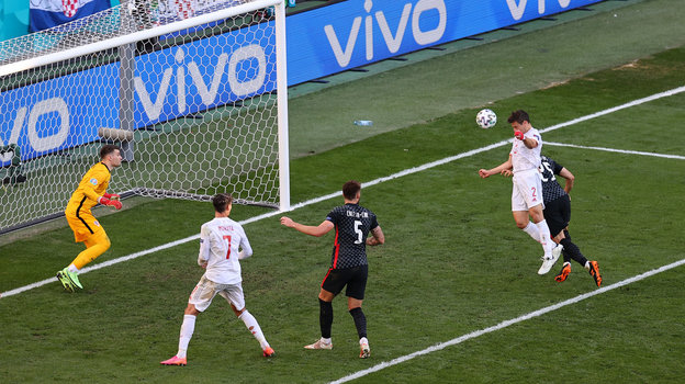 На 20-й минуте испанцы курьезно забили в свои ворота: голкипер Унаи Симон не смог принять пас назад от Педри, и мяч оказался в сетке.