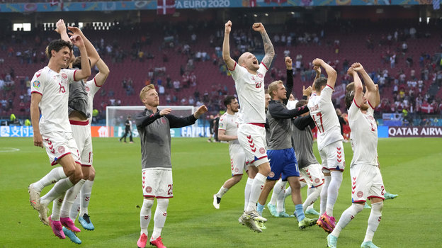 Ранее датчане вышли из группы, набрав три очка благодаря победе над сборной России (4:1). В 1/4 финала они сыграют с победителем пары Нидерланды — Чехия.