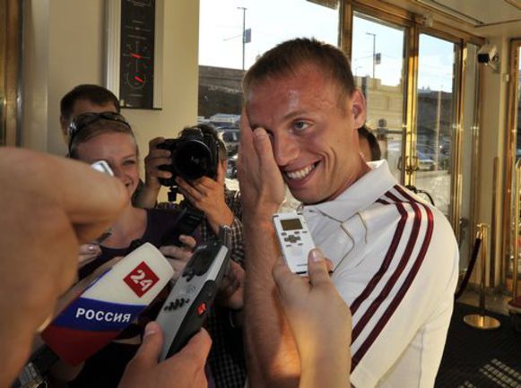 Хотел было проскочить мимо Роман Павлюченко. Разговаривать форвард "Тоттенхэма" не слишком хотел, но все-таки уделил минутку представителям прессы:
