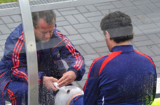 Свою тренировку ставшая еще более серьезной после вчерашнего команда Адвоката начала за полчаса до полудня. Собрав своих подопечных в центральном круге, голландец подчеркнул: завтра со всей серьезностью приступаем к подготовке к Греции, а пока - перезарядка батареек. Никаких улыбок даже после маленькой проделки тренера, запустившего со спины мячи в ноги Широкова и Павлюченко, когда те вместе с партнерами отправились на "прогревочный" круг. Оба Романа мельком оглянулись и безо всяких эмоций с остальными продолжили движение.