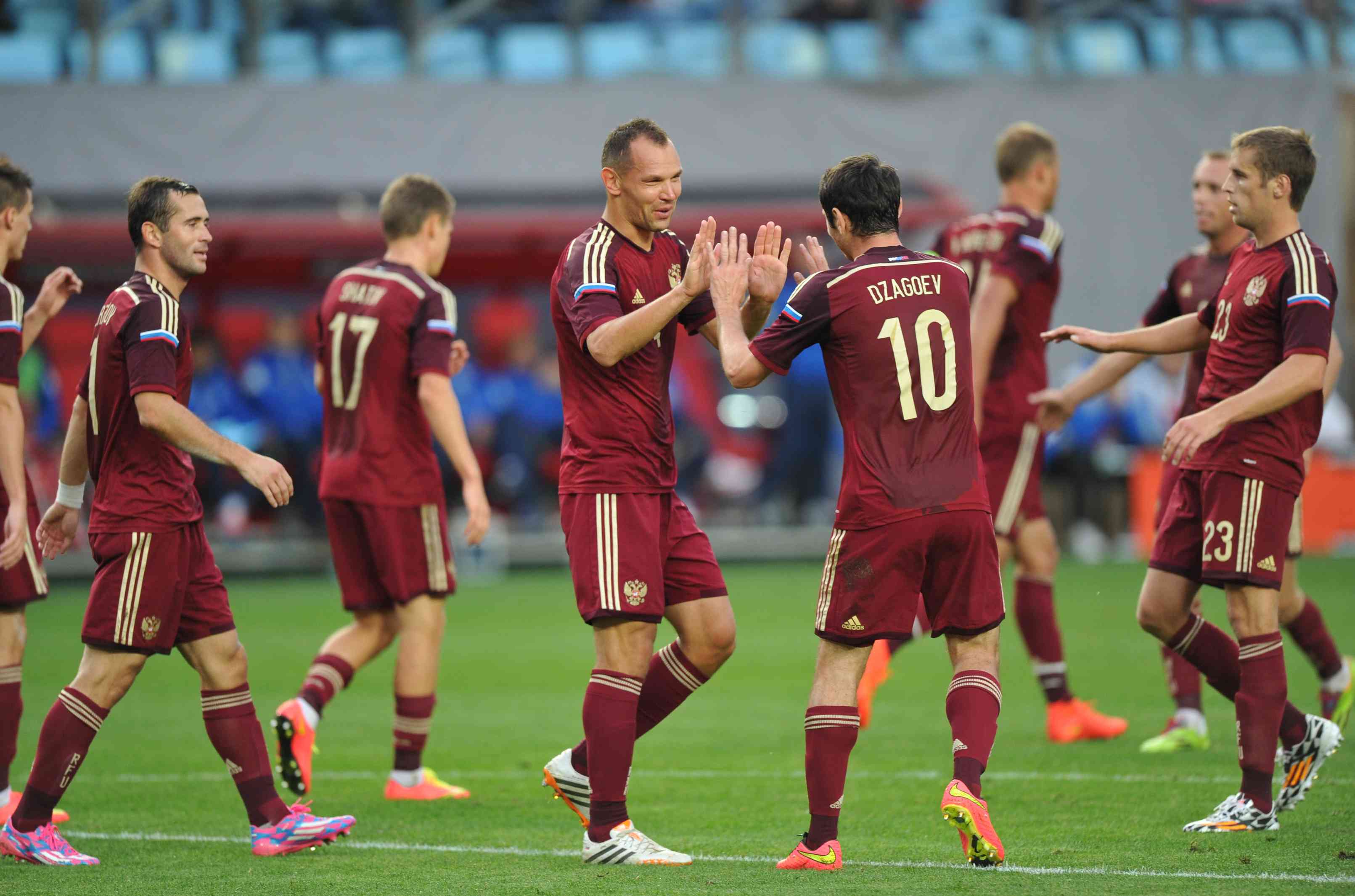 РОССИЯ: 1. Акинфеев (12. Лодыгин, 46) – 22. Смольников, 14. В.Березуцкий (к), 4. Игнашевич (13. Гранат, 46), 23. Комбаров (2. Паршивлюк, 71) – 10. Дзагоев, 8. Глушаков, 17. Шатов (7. Оздоев, 46) – 15. Полоз (19. Самедов, 76), 11. Кержаков, 18. Черышев (21. Ионов, 81).