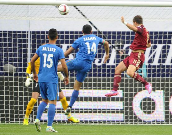 У Азербайджана за весь первый тайм мог возникнуть ровно один голевой момент, но на 39-й минуте, когда Надиров отдал тонкий разрезающий пас по центру на выход Дадашову, последний не вышел один на один, а... поскользнулся. Зато Россия две минуты спустя довела счет до крупного, забив за 40 минут больше, чем за 270 на чемпионате мира. Дзагоев после розыгрыша углового навесил, Игнашевич "перевисел" Рамалданова – и получи, Азербайджан, 3:0. Вот только радоваться этому как-то не больно получалось. Не столько из-за воспоминаний о чемпионате мира, сколько из-за скромности соперника.