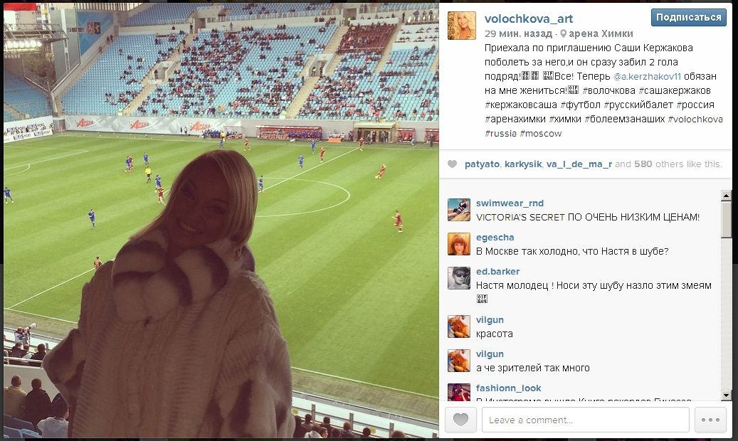 Кержаков тому нисколько не огорчился. Тем более что болела за него на трибуне подсмотренная мною в толпе Настя Волочкова. Что Кержакову до козней УЕФА – при такой-то роскоши?
