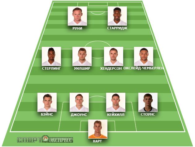 В отсутствие Баркли полузащита сборной Англии выглядела так: Хендерсон и Уилшер в центре, и Окслейд-Чемберлен с Стерлингом по флангам. Без экспериментов обошелся Ходжсон, выставил оптимальный состав.