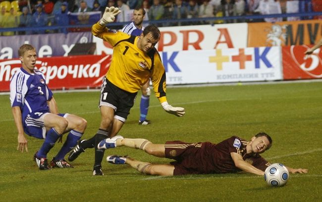 В отборочном цикле ЧМ-2010 россияне в домашнем матче победили "карлика" со счетом 3:0.