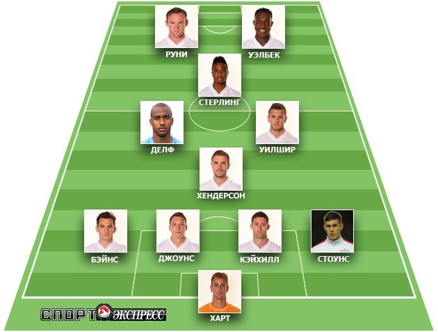 На вершине ромба, в роли атакующего хавбека, действовал 19-летний Стерлинг, которому главный тренер очевидно доверяет. Он, кстати, регулярно выдвигался вперед, в линию нападения, а форварды Руни и Уэлбек часто смещались на фланги, особенно последний, поскольку правый защитник Стоунс вперед не ходил совершенно.