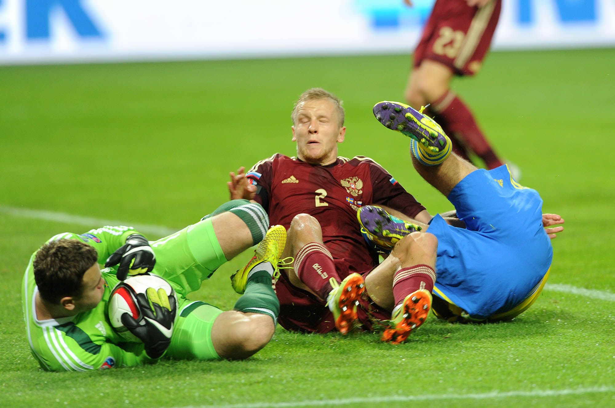 Первый – это гол Кокорина. Спокойный, изящный, как будто даже запланированный. Пока Дзюба отвлекал внимание опекунов, динамовец получил возможность дойти с мячом почти до линии штрафной, увидеть, что Исакссону закрывают обзор Гранквист и Ольссон, и точно отправить мяч в самый угол. Стадион даже не понял, что произошло, а россияне уже обнимались.