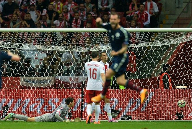 Пока сборная Германия безуспешно пыталась разобраться с Ирландией, обыгравшая в прошлом туре бундестим Польша стремилась доказать неслучайность собственного успеха и закрепиться на первом месте. Партнеры прислушались к словам Роберта Левандовски, уверявшего? что неудача против Шотландии обесценит первую в истории победу над немцами. Самым внимательным оказался лишь второй раз в карьере попавший в стартовый сборной Мончиньски. Выступающий в китайской лиге хавбек воспользовался неудачными действиями Хаттона и с ходу отправил мяч в дальний угол.